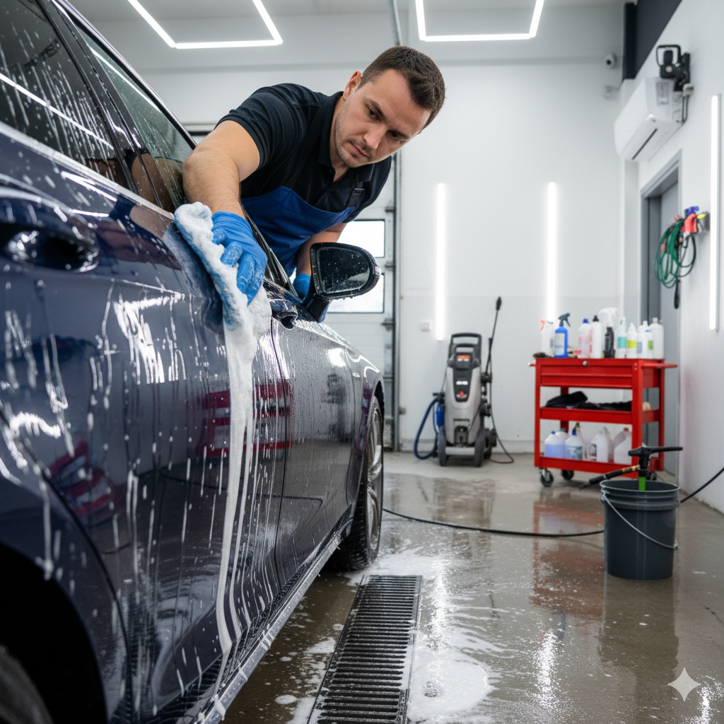 - Interior: Complete vacuuming of carpets, seats, and trunk, plus a wipe-down of the dashboard and door panels, and cleaning of interior and exterior windows.